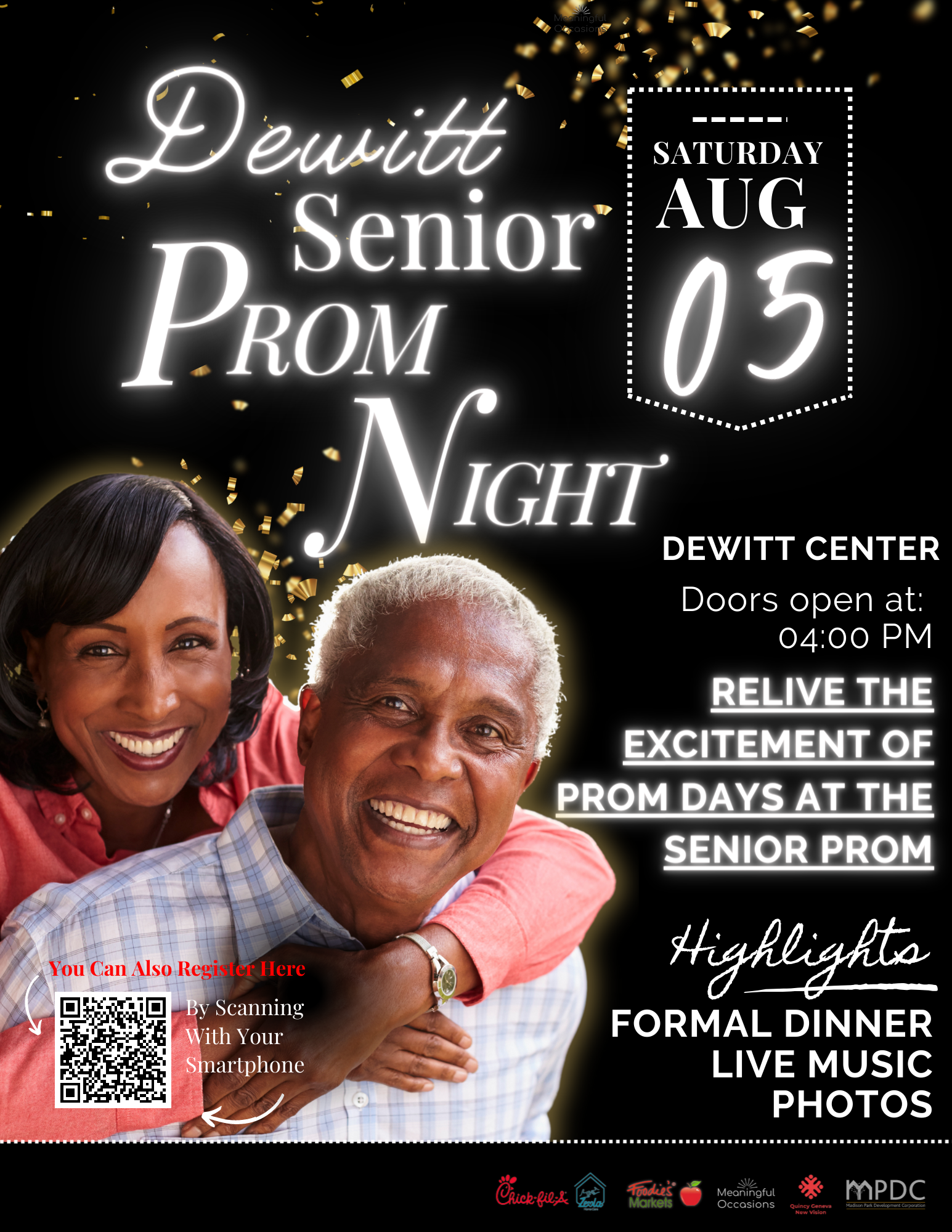 To learn more about sponsorship opportunities and how your generous support can create unforgettable moments for seniors, please get in touch with us at info@meaningfuloccasions.com. Let's make the Dewitt Senior Prom, Tech Savvy Seniors, and Senior Style Showcase events a resounding success as part of the entire initiative!